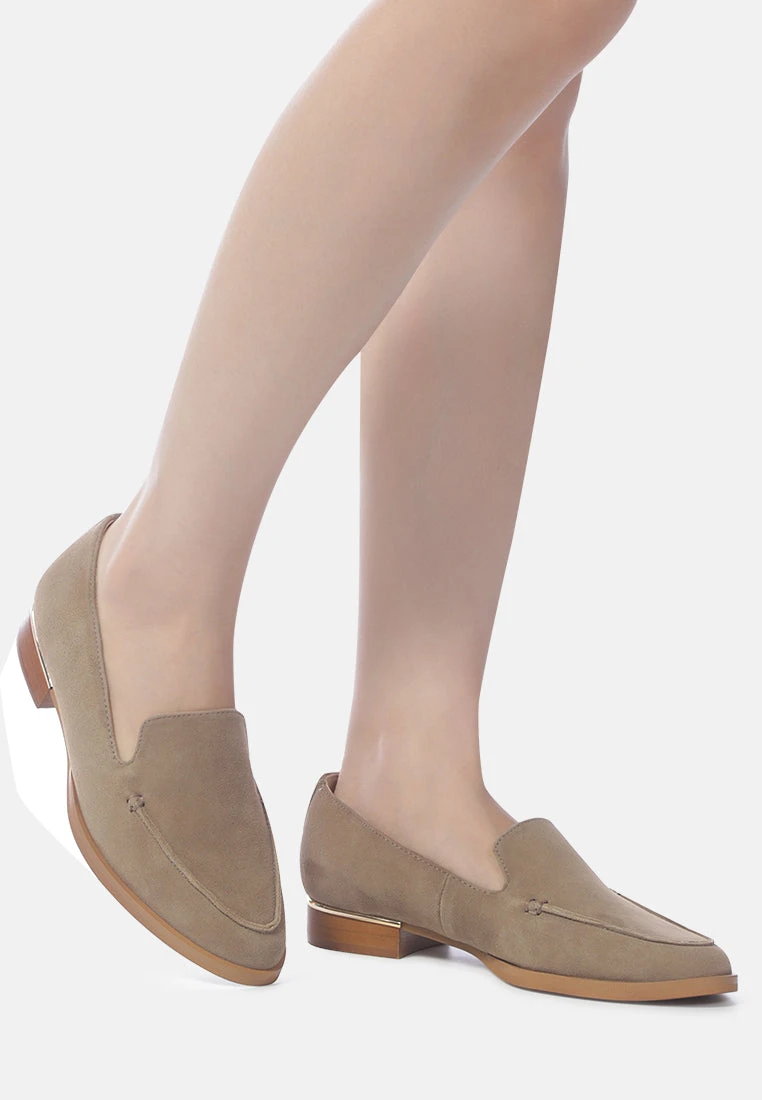 In soft Genuine Leather, this formal piece has metallic arc detail on the heel. Just the shoe you were looking to attend the next board room meeting! Looking for a no-nonsense and suave look at work? Get this pair of genuine soft suede loafers that get your feet warm and cozy. Pair it with wide-leg trousers and jackets to nail the perfect boardroom look.