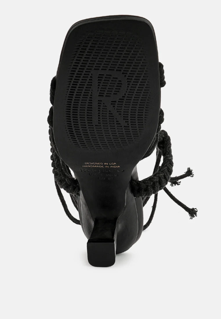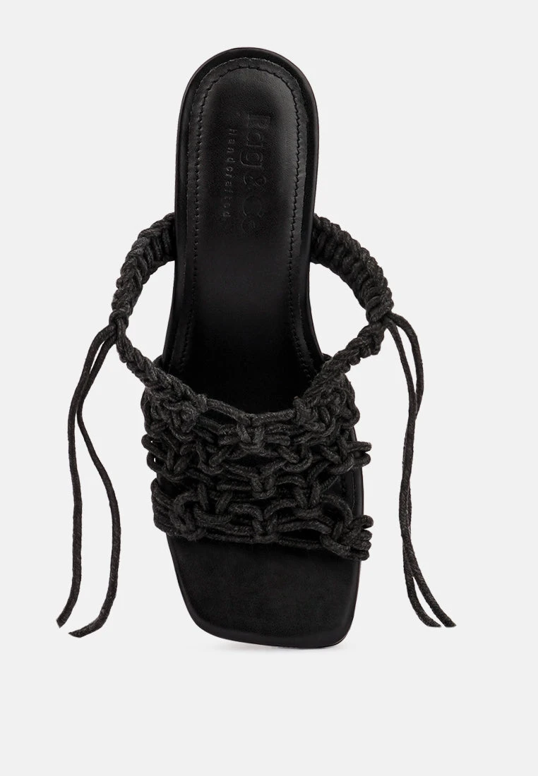 Handcrafted Mid Heel Sandals with braided cotton yarns is a beauty to hold on your feet! The stylish lace-up design in tune with braiding, set up on ergonomically crafted vamp which rests feet well and stylish square cut toe is all about utility based comfort. A style to have in summers if you want style, comfort and aesthetics balanced.