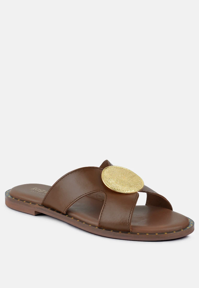 The metal embellishment enhances the overall aesthetic of the leather slip-on sandals. The tiny studs along the insole frame give it a lovely finish. The Soft Padded insole offer comfort while the X cut-out detail is visually appealing. They are easy to wear and look chic and fashionable.