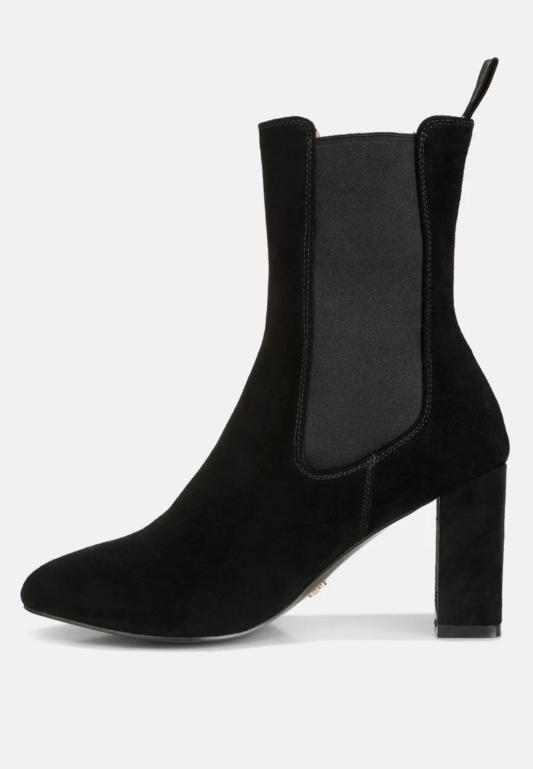 Discover the epitome of chic with these high ankle suede Chelsea boots! Their comfortable cushioned insoles make them an effortless pair to wear and style. Their versatility allows maximum wearability and makes them a staple in every shoe wardrobe.