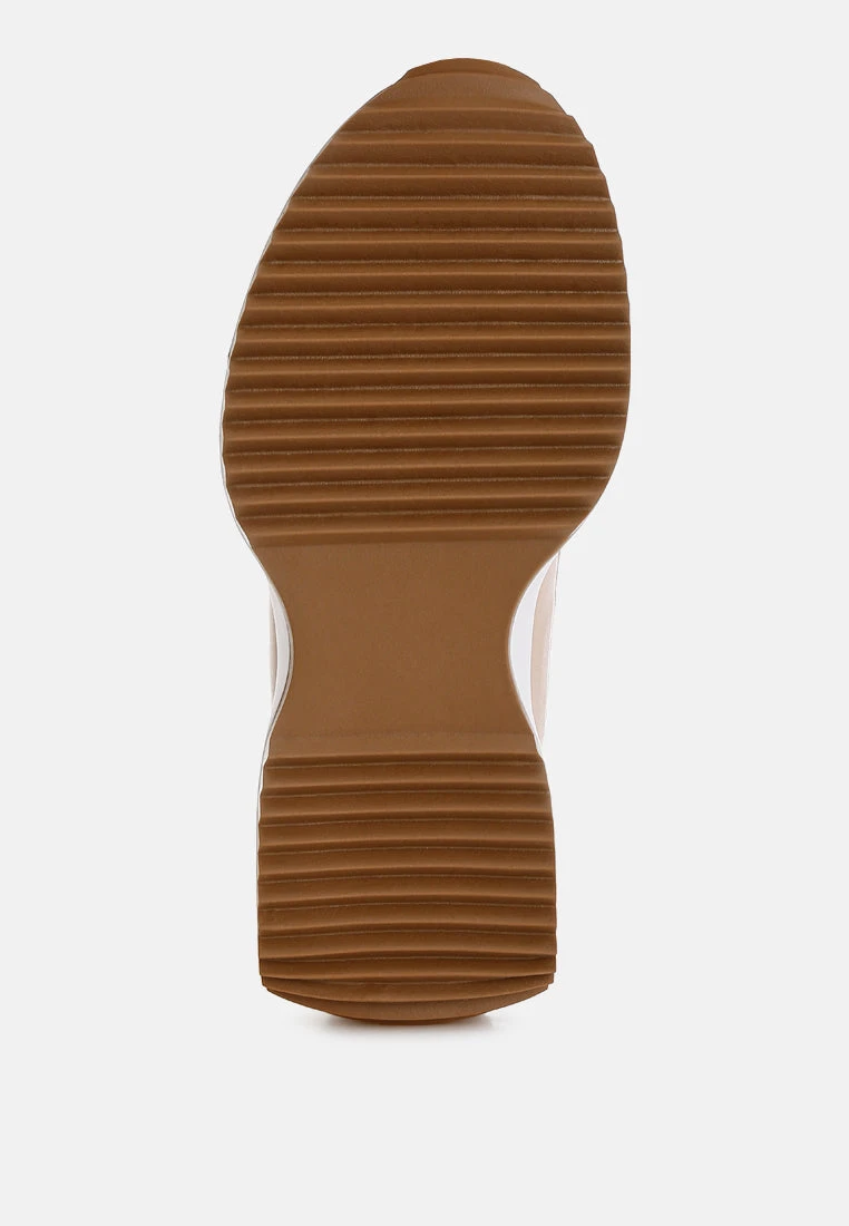 Beautifully crafted with premium real leather, embellished with edgy stud embellishments that amplify the visual aesthetic, the chunky sneakers are trendy and chic. The lace up design is convenient while the comfortable cushion insoles ensure a relaxed fit.