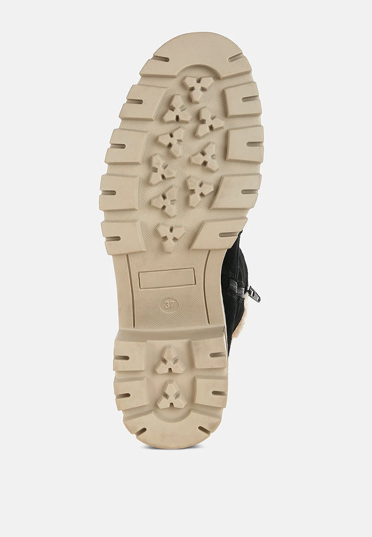 The high ankle shaft and classic lace-up style with anti-skid lug sole make these chunky ankle boots an alpha with all the right features offered in one. The comfortable 2-inch heel, sleek zipper closure, and faux fur collar detail make this an iconic pair designed for anywhere and everywhere!