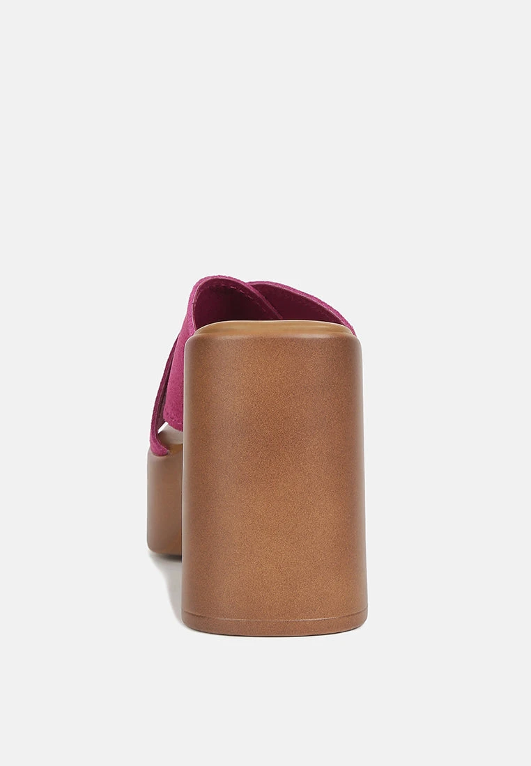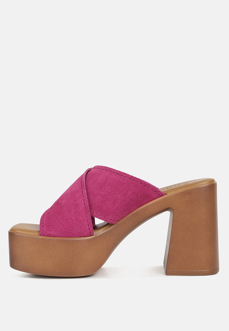 MATRIX Criss Cross Strap Block Heel Sandals In Fuchsia