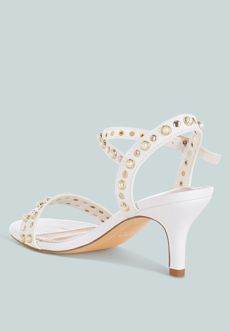 The real leather sandals have a sophisticated yet edgy flair with stud embellishments. The premium quality genuine leather upper gives the sandals a posh and luxurious feel, while the plush cushion insoles and kitten heels are comfortable on the feet.