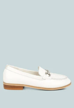 HOLDA Horsebit Embellished Loafers With Stitch Detail In Off White