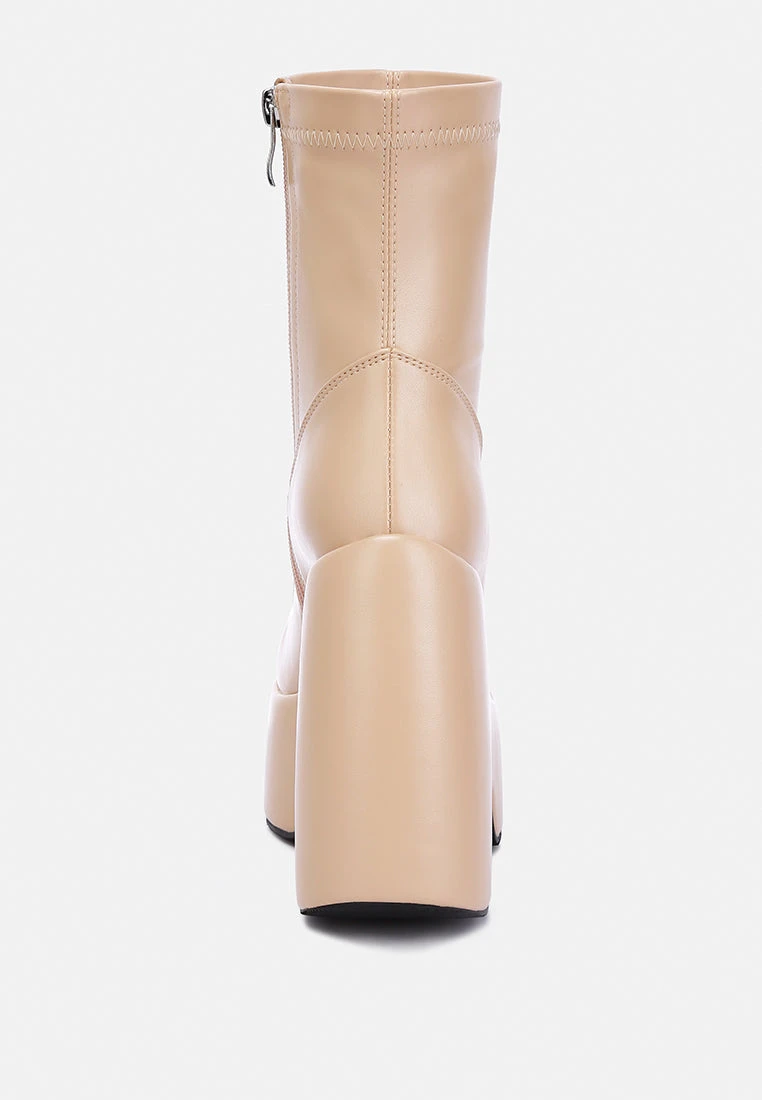 Lightweight statement high platform boot from Rag & Co. these ankle boots have side zipper detail which makes it easy to wear. It has comfortable round toe. The stretch leatherette is ultra comfy, flexible and molds as per your feet.