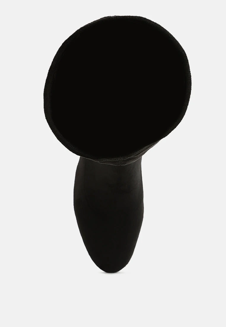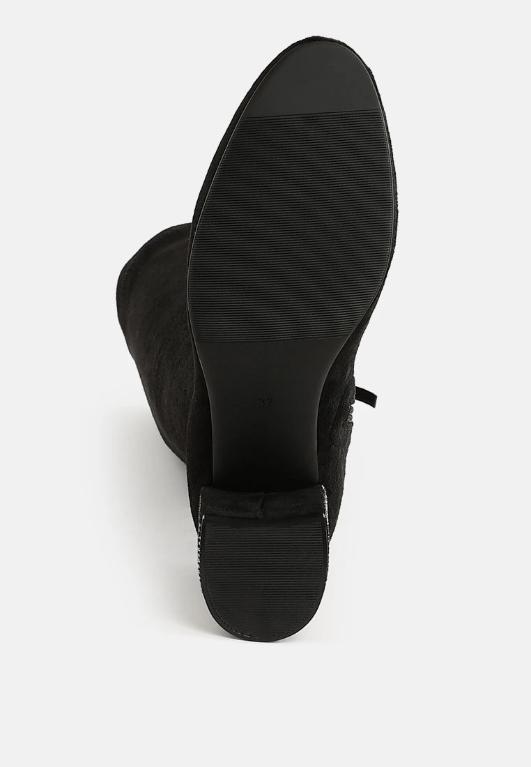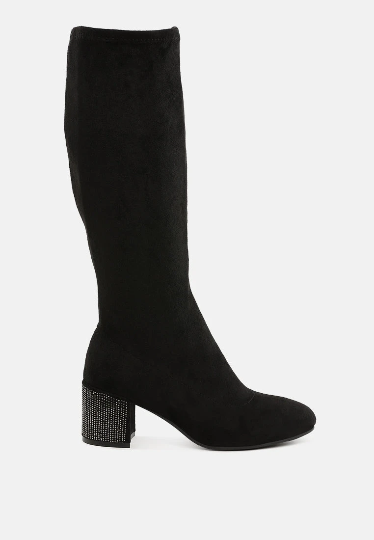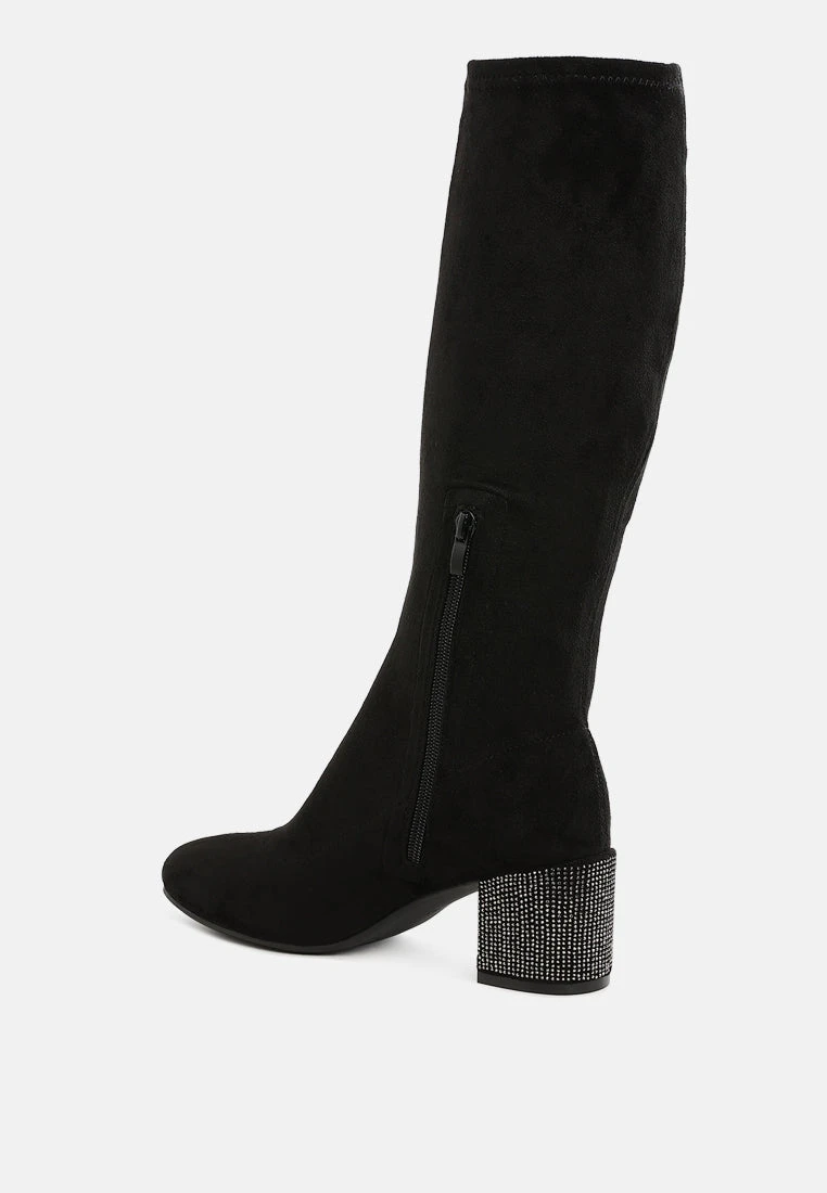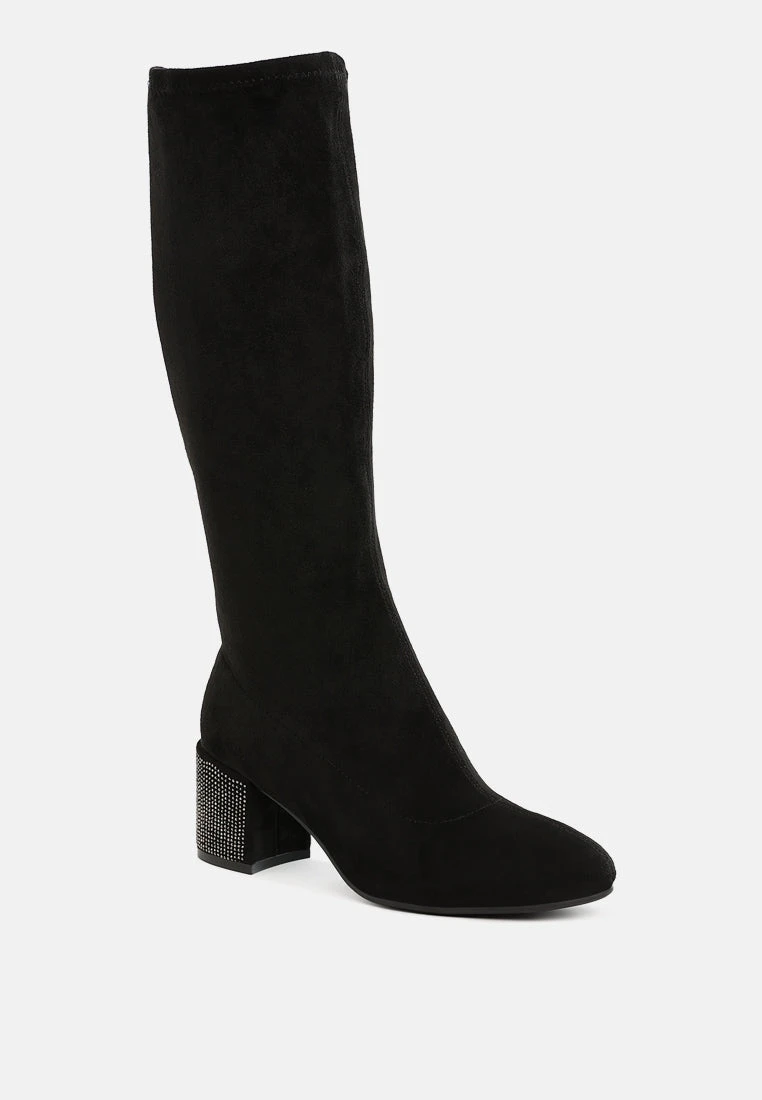 The knee high boots have a minimalist chic flair with the stretchable microfiber upper. The block heels and the comfortable cushion insoles cut strain and offer a relaxed fit. The zipper closure is also a convenient feature and make the boots easy to wear.